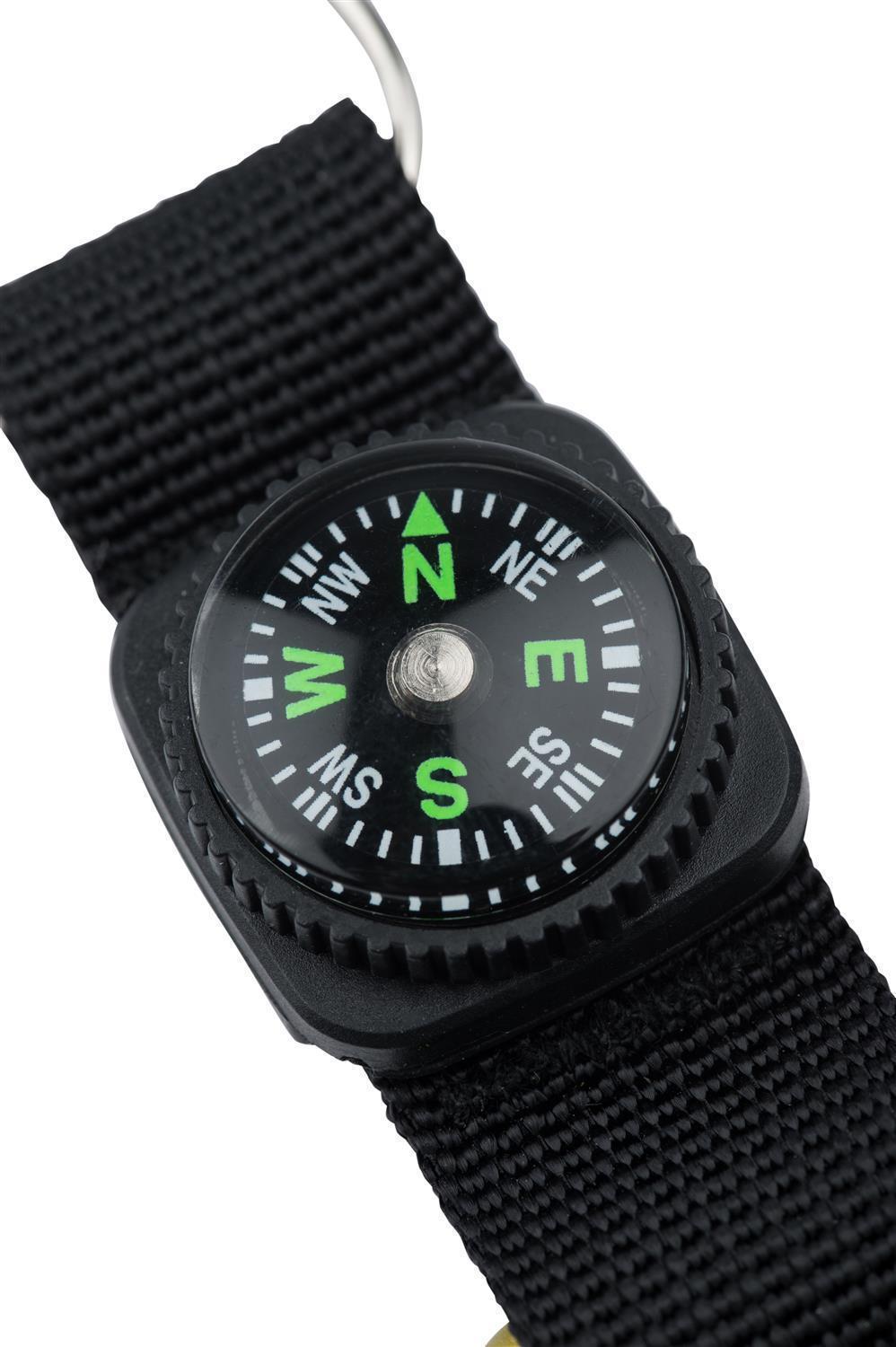 Einfach den Karabiner an gewünschter Stelle einhaken – ob am Schlüsselbund, Trekking-Rucksack oder Zelt. Der Kompass unterstützt bei der groben Orientierung auf Wanderwegen oder im Gelände.