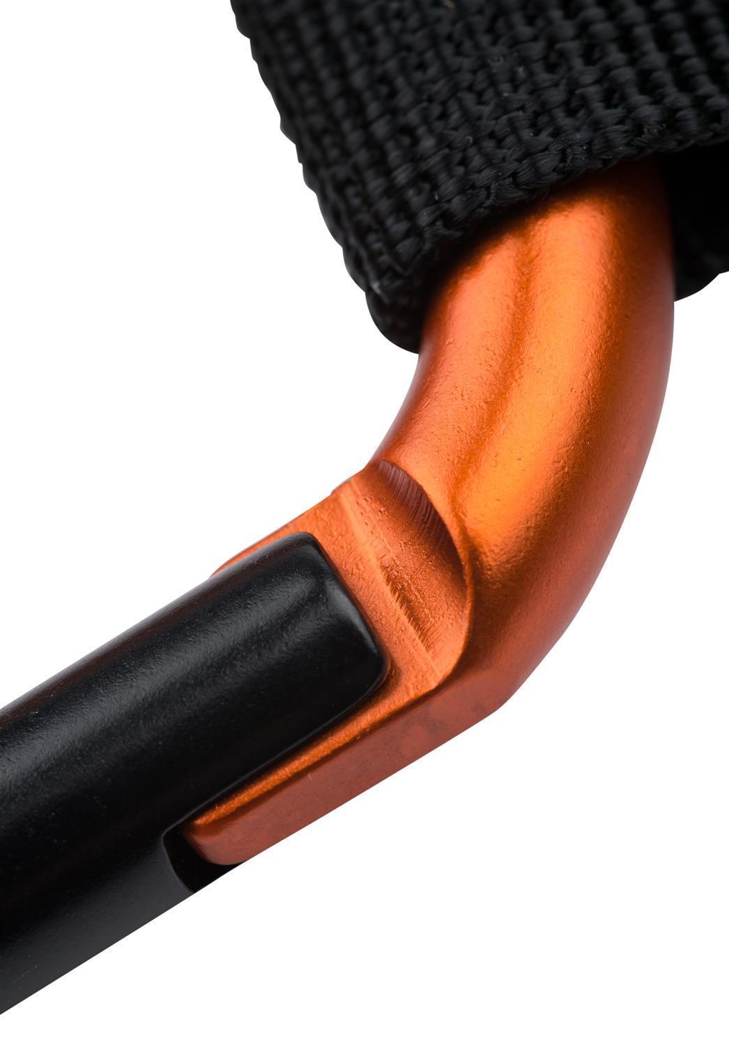 Die Karabiner bestehen aus leichtem Metall, das Band aus strapazierfähigem Gewebe. Zur Reinigung genügt ein feuchtes Tuch. Nicht für Klettersport geeignet.