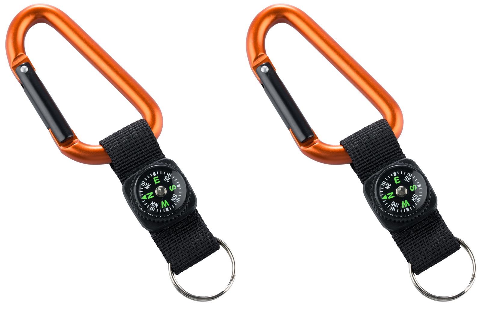- 2 x Karabiner-Schlüsselanhänger mit Band und Kompass