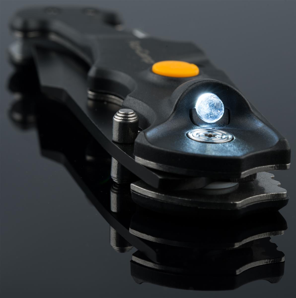 Mit nur 105 g Gewicht und einer geschlossenen Länge von 11,8 cm passt das Messer in jede Tasche. Die LED-Leuchte wird über die integrierte USB-Batterie aufgeladen – ein passendes Kabel ist im Lieferumfang enthalten.