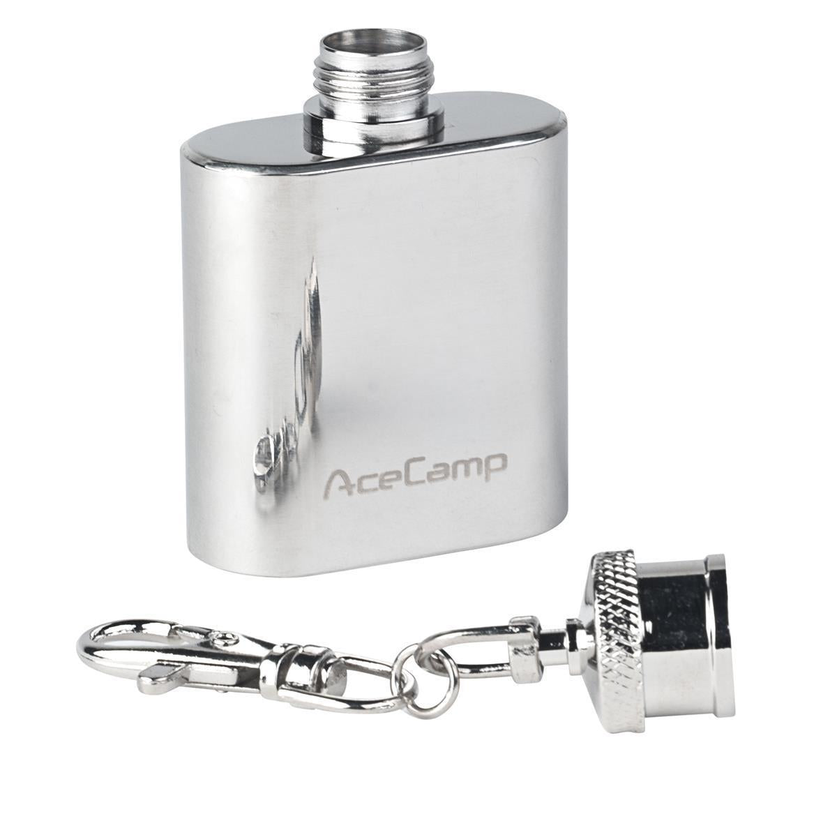 Der AceCamp Schlüsselanhänger Flachmann ist die praktische Lösung für alle, die unterwegs nicht auf ein kleines Schlückchen verzichten möchten. Mit einem Fassungsvermögen von 30 ml und seiner kompakten Größe passt er unauffällig an jeden Schlüsselbund.