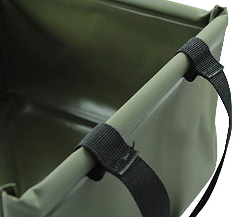 Gefertigt aus hochwertigem Vinyl mit verschweißten Nähten ist die Faltschüssel strapazierfähig und wasserabweisend. Die verstärkten Henkel sorgen für sicheren Halt beim Tragen. Die glatte Oberfläche lässt sich leicht mit Wasser und etwas Seife reinigen.