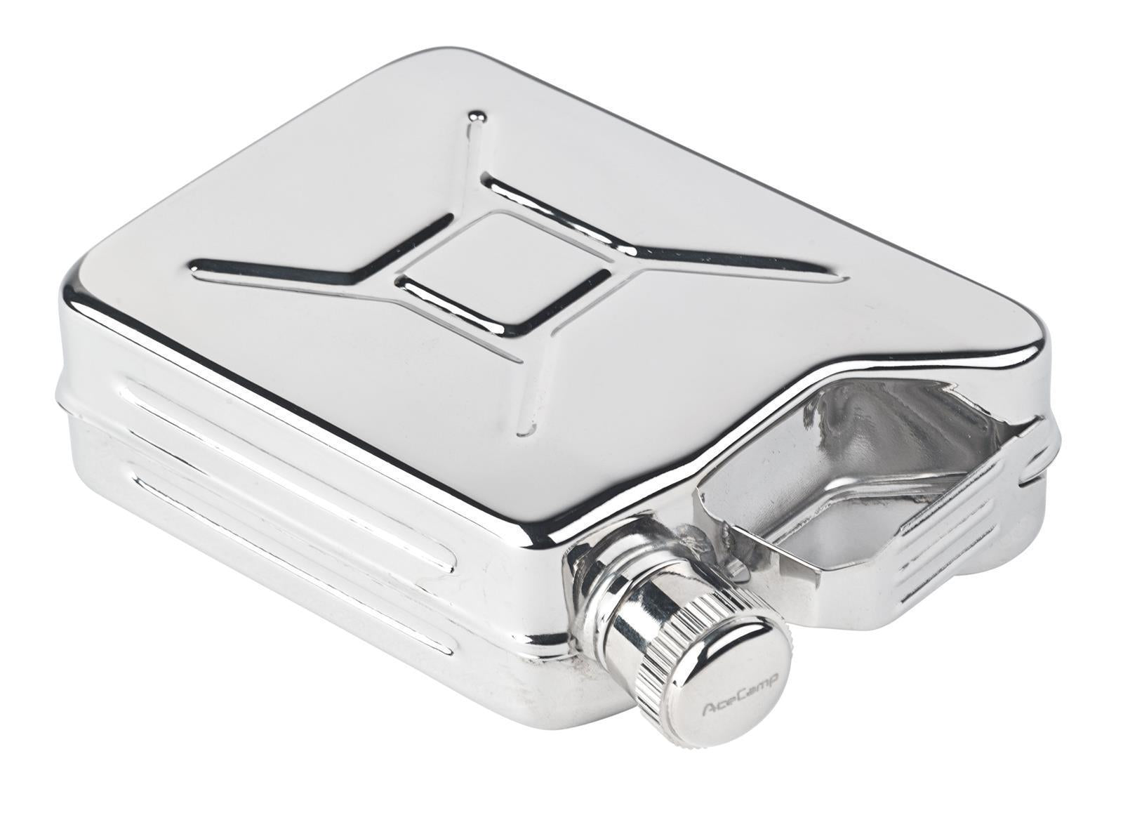 Das AceCamp Flachmann 2er-Set kombiniert Funktionalität mit einem außergewöhnlichen Look. Jeder Flachmann besteht aus rostfreiem Edelstahl und ist in der Form eines klassischen Benzinkanisters gestaltet – ein echter Hingucker für unterwegs.