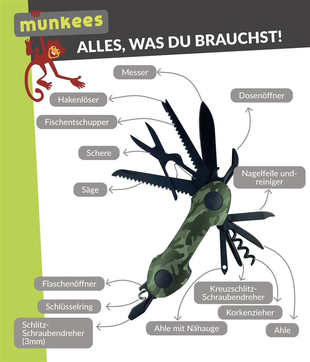 1x munkees® Taschenmesser Camouflage mit 15 Funktionen