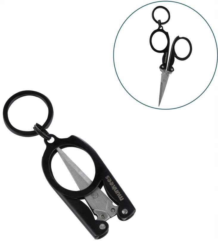 Die faltbare Schere von munkees ist eine durchdachte Lösung für alle, die unterwegs oder im Alltag eine kompakte Schneidehilfe benötigen. Dank des integrierten Schlüsselrings lässt sich die Schere bequem am Schlüsselbund oder Rucksack befestigen und ist so jederzeit griffbereit – ob beim Camping, im Büro oder zu Hause.