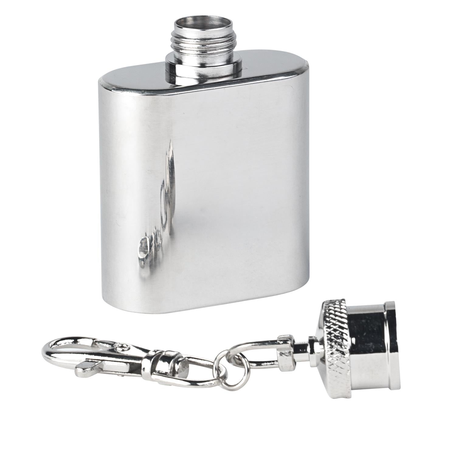 - Kompakter 30-ml-Flachmann aus Edelstahl (Maße: 22 x 45 x 80 mm, Gewicht: 55 g)