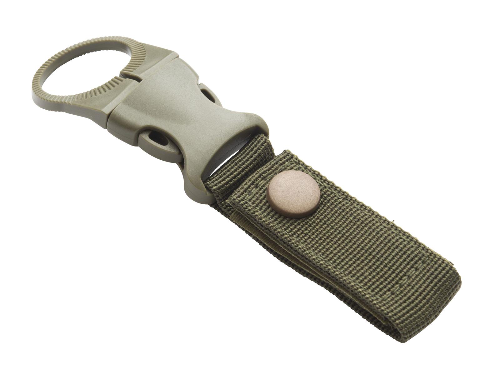 Der Flaschenhalter besteht aus robustem Nylonmaterial und ist auf Langlebigkeit ausgelegt. Er eignet sich nicht nur für Flaschen, sondern auch für Taschenlampen, kleine Werkzeuge oder andere Utensilien, die unterwegs schnell griffbereit sein sollen. Die kompakte Größe macht ihn zu einem unauffälligen, aber nützlichen Begleiter.