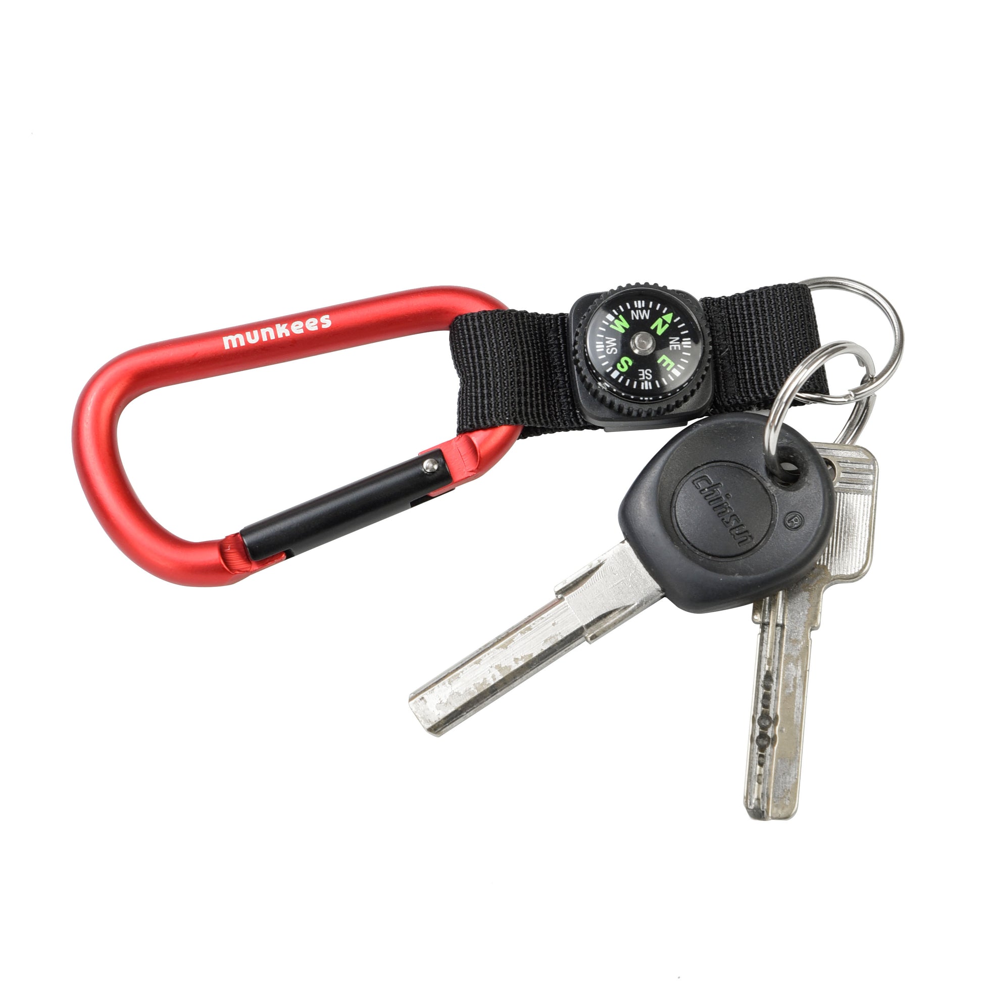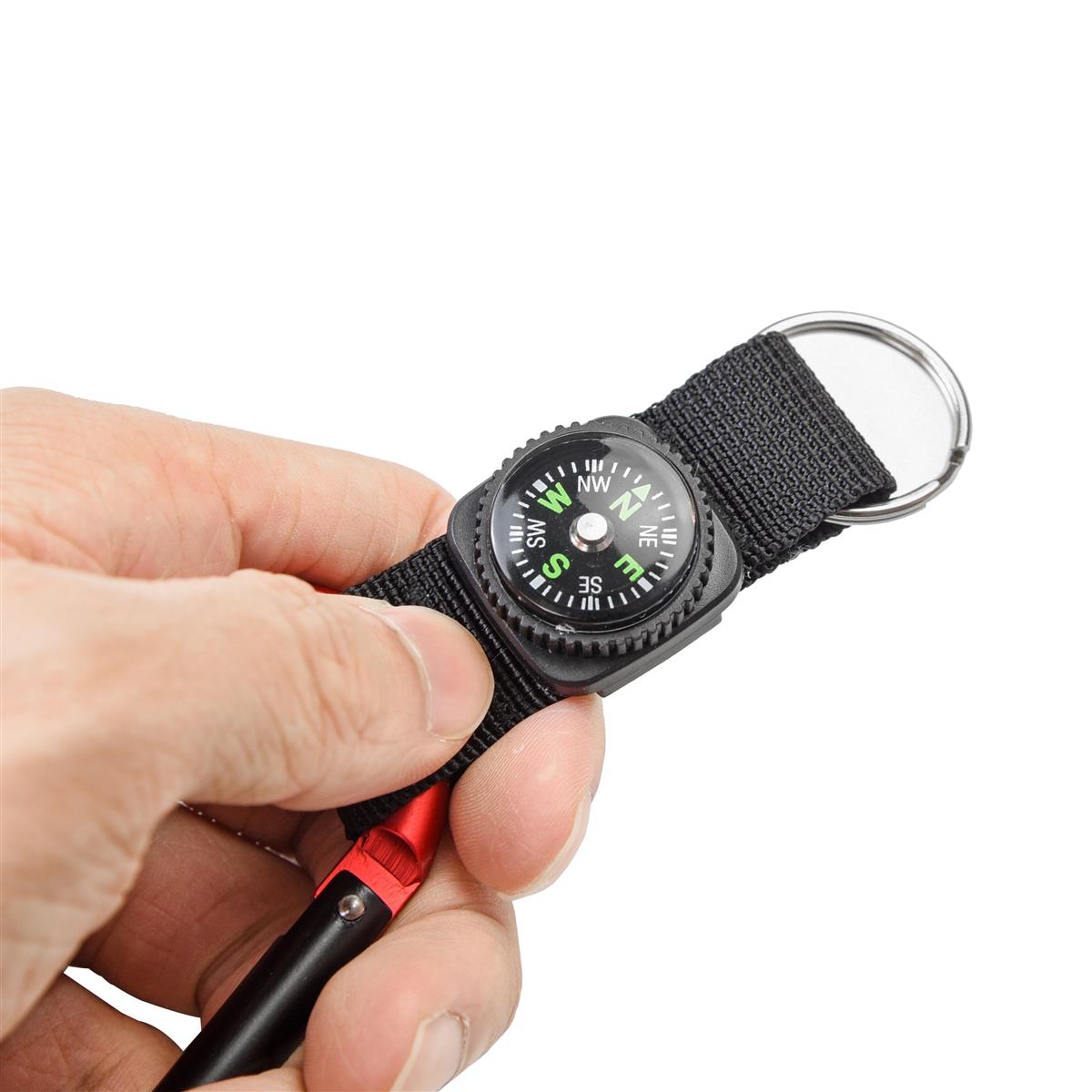 Der Karabiner lässt sich einfach an Rucksack, Gürtelschlaufe oder Tasche befestigen und hält Schlüssel oder andere kleine Gegenstände griffbereit. Der eingebaute Kompass unterstützt bei der groben Orientierung in der Natur.