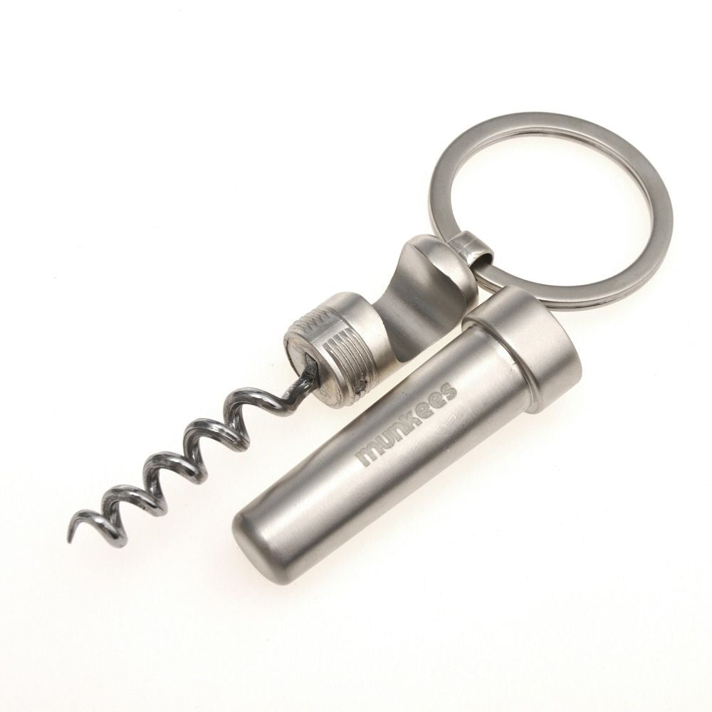 Der munkees Schlüsselanhänger Korkenzieher vereint Funktionalität mit stilvollem Design. Dank seiner kompakten Größe passt er bequem an jeden Schlüsselbund und ist damit immer zur Hand, wenn eine Flasche Wein geöffnet werden soll – ob beim Camping, Picknick oder im Alltag.