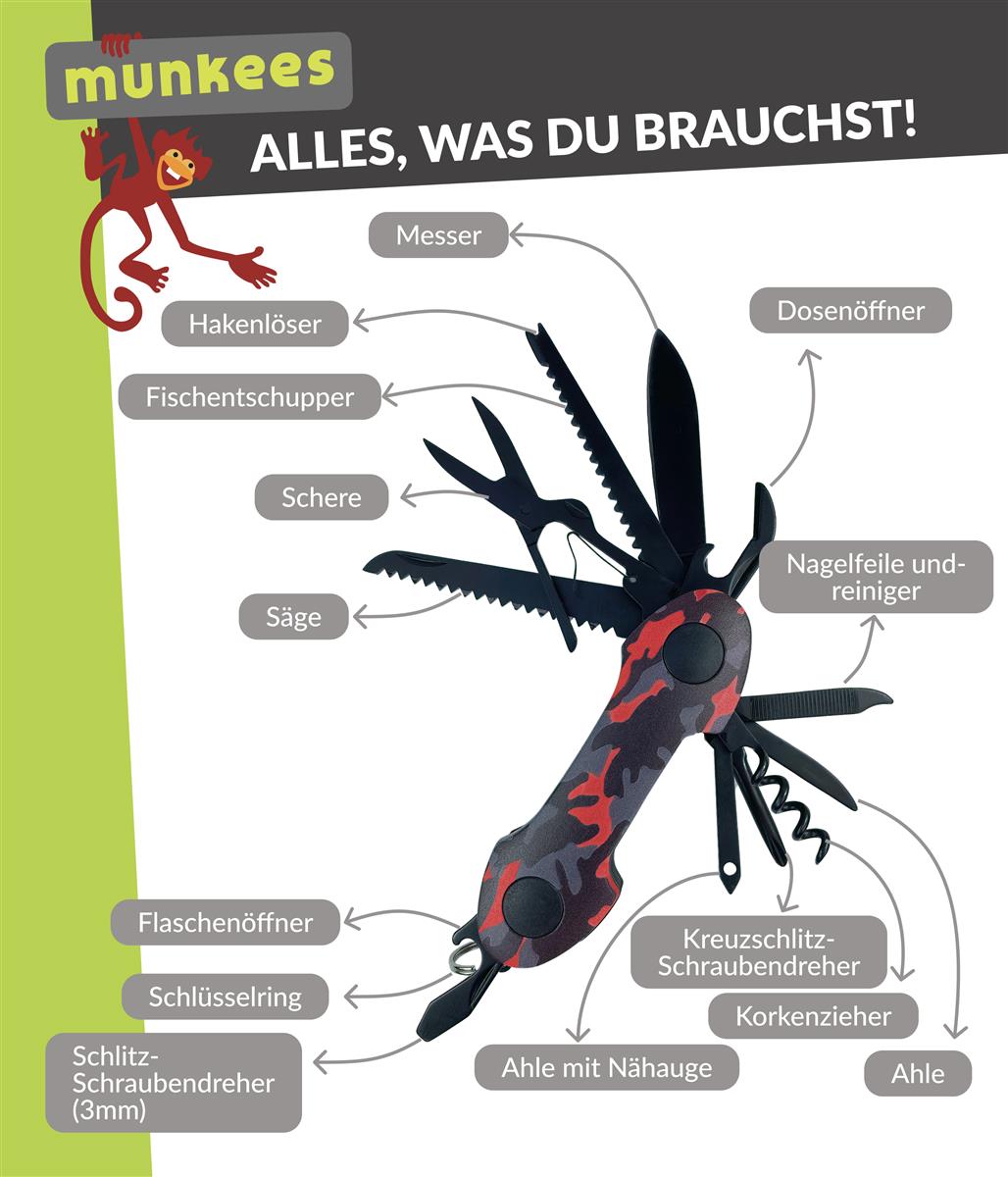 - 1x munkees Taschenmesser Camou mit 15 Funktionen
