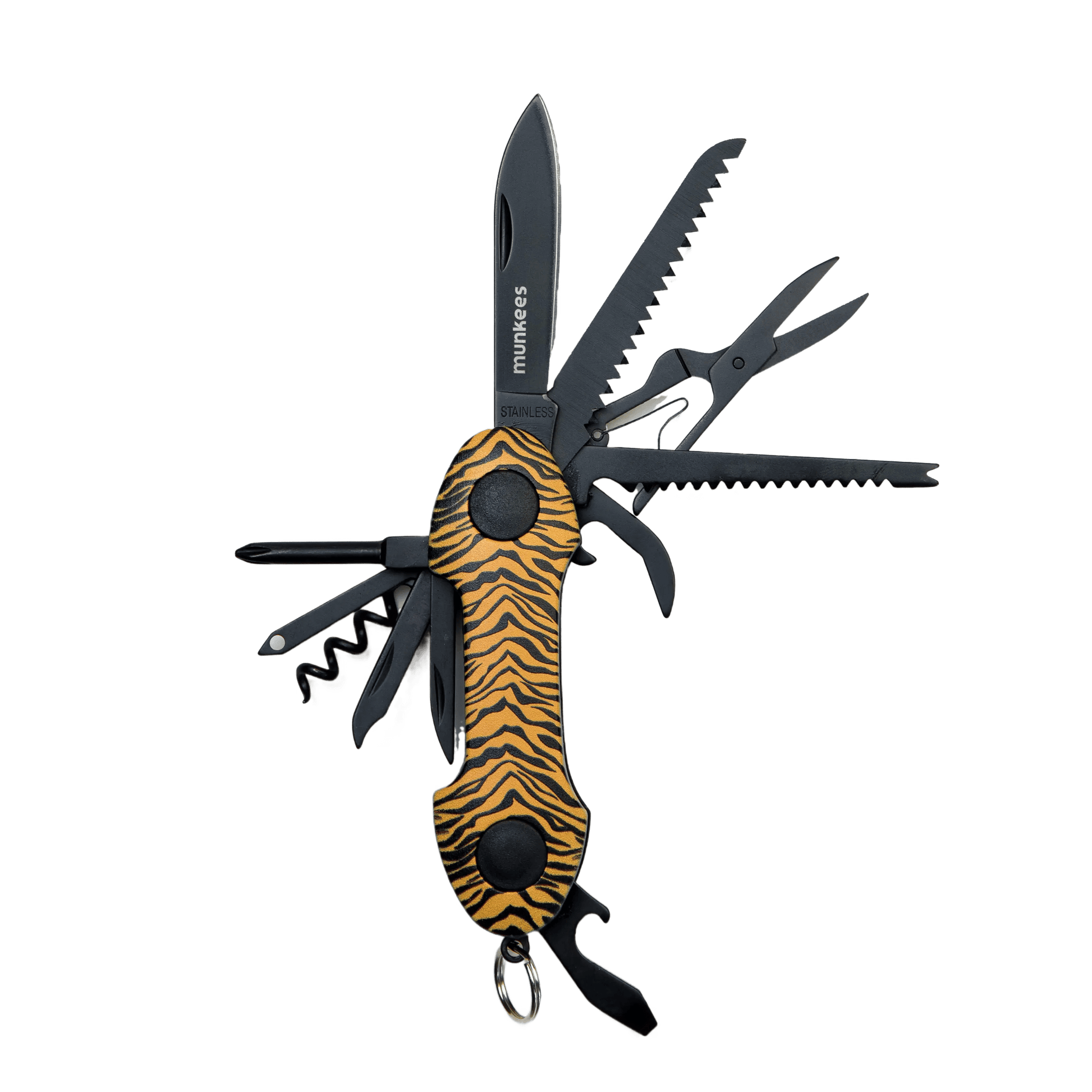 Das munkees Taschenmesser Tiger vereint 15 nützliche Funktionen in einem kompakten Format. Ob beim Wandern, Campen oder im Alltag – dieses Multitool ist immer zur Hand, wenn Sie es brauchen.